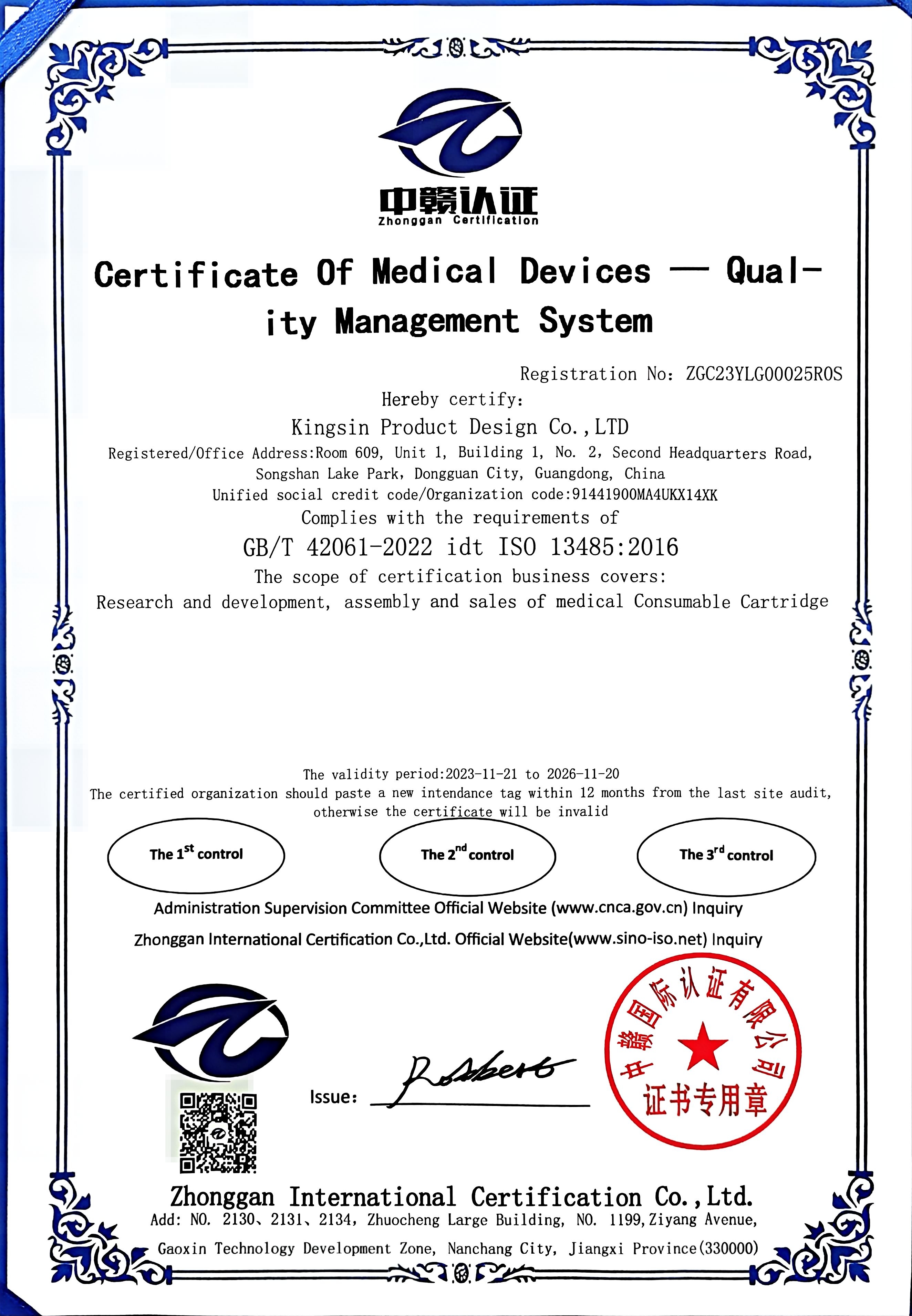 Certificate Of Medical Devices -Quality Management System