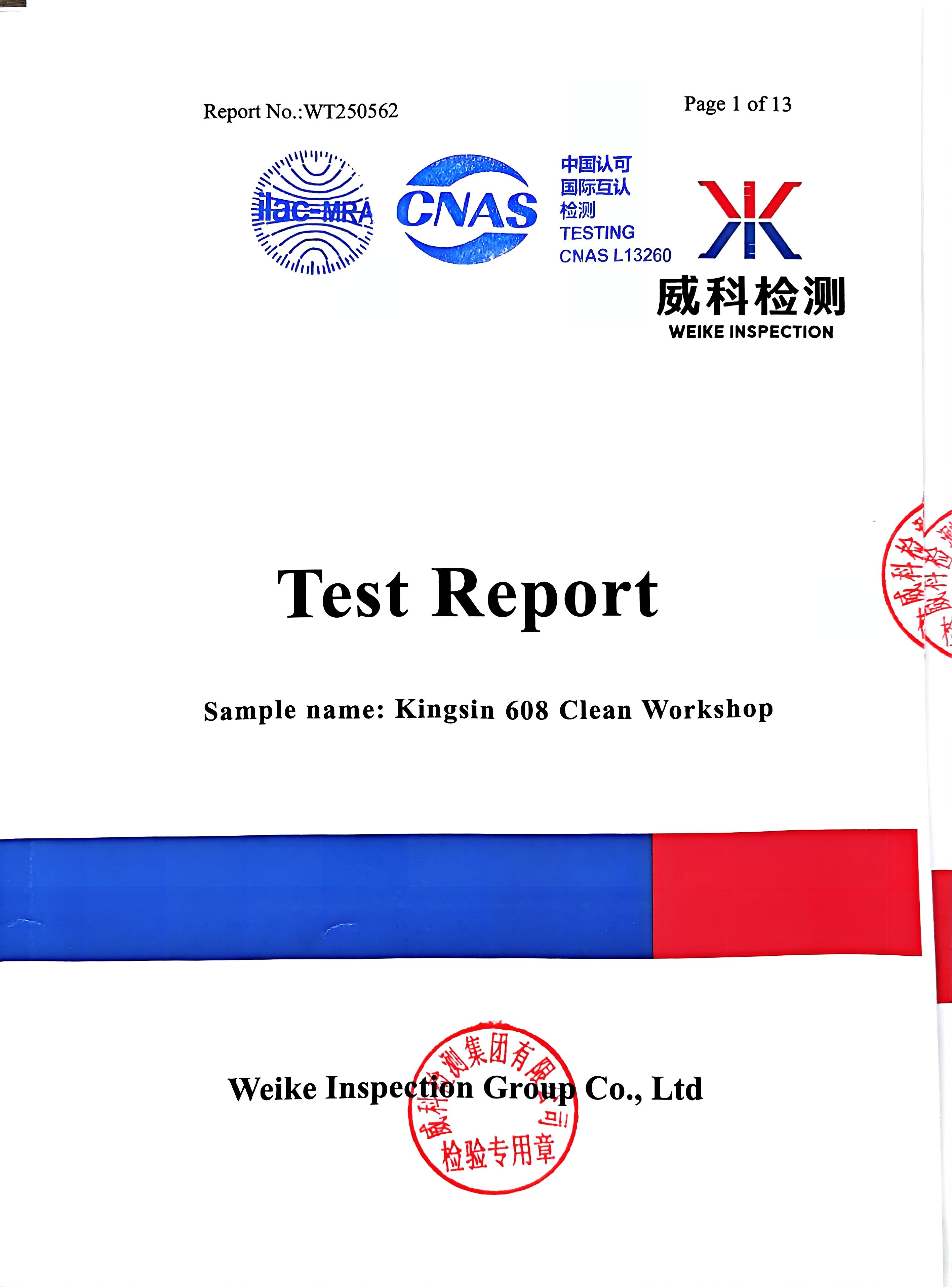 Test Report for kingsin clean workshop