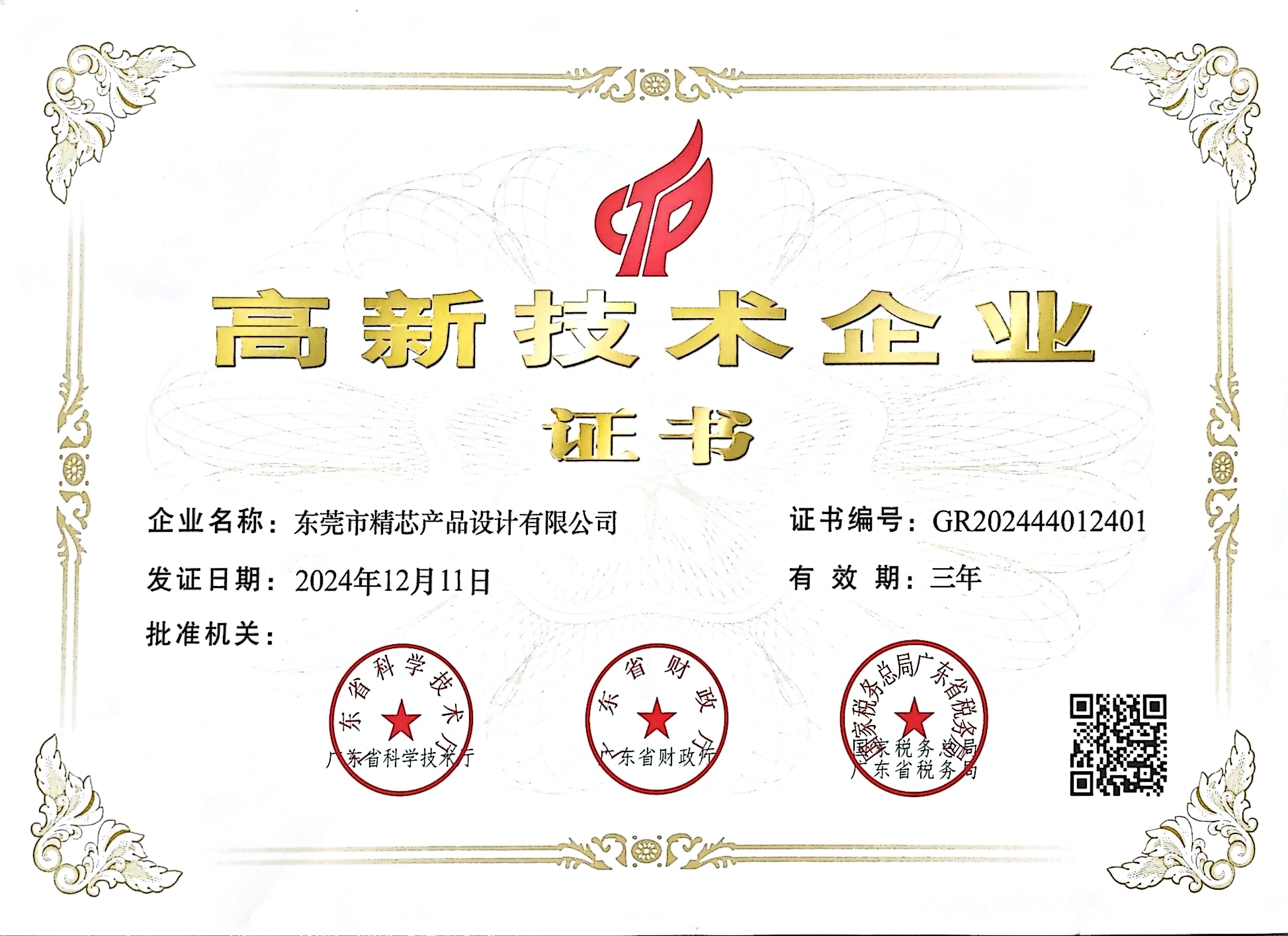 High tech Enterprise Certificate